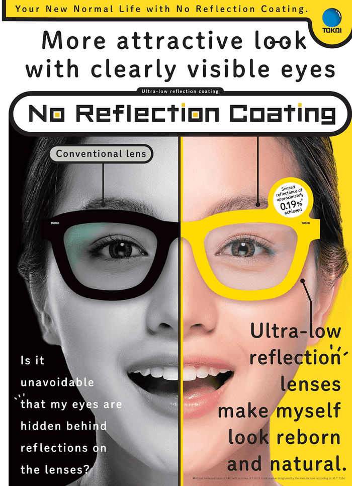 That's why now is the time for us to embrace the ultra-low reflection coating, "No Reflection Coating", which prevents reflections on our eyeglass lenses and keeps our eyes clearly visible.
