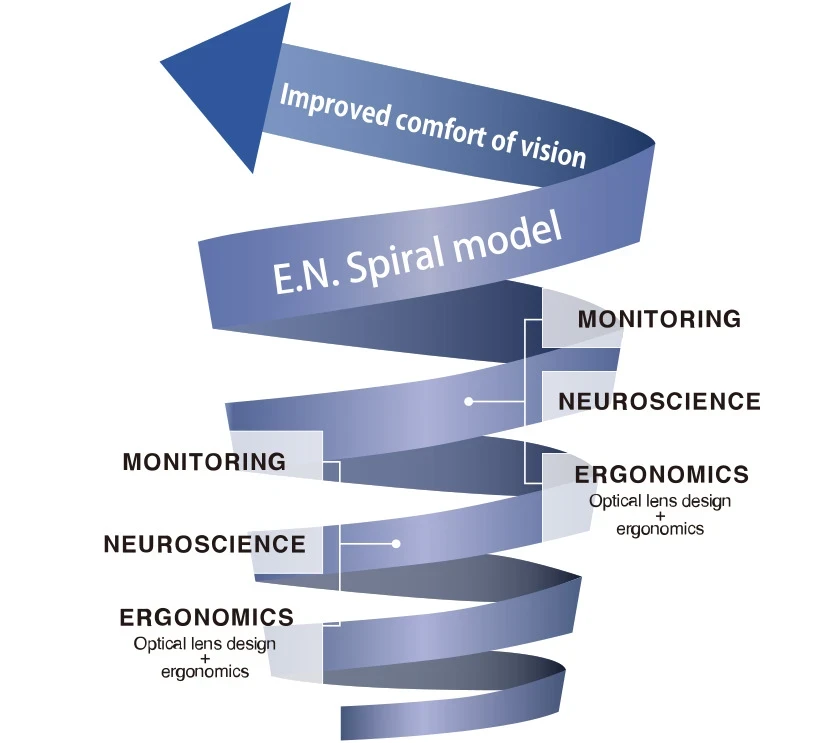Until now, the evaluation of “comfort of vision” has been a subjective evaluation based on monitoring. In collaboration with National Institute for Physiological Sciences and National Institutes of Natural Sciences, where the world’s most advanced neuroscience research is conducted, we have carried out basic research based on how the brain sees when wearing lenses. We have improved the “comfort of vision” of our lenses by repeatedly evaluating and monitoring “comfort of vision” using the latest neuroscience and feeding this back into lens design.